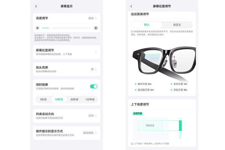 夸克AI眼镜S1屏幕支持亮度自动调节,支持抬头亮屏,还支持屏幕位置调节,包括了9档远近距离调节和5档上下高度调节,能够很好的满足不同使用场景和个人偏好。屏幕操作流畅,显示清晰,不仅能够提供实时的交互反馈,也可以用于消息提醒、提词、显示导航路线等,能够很好的辅助用户使用各项功能。
