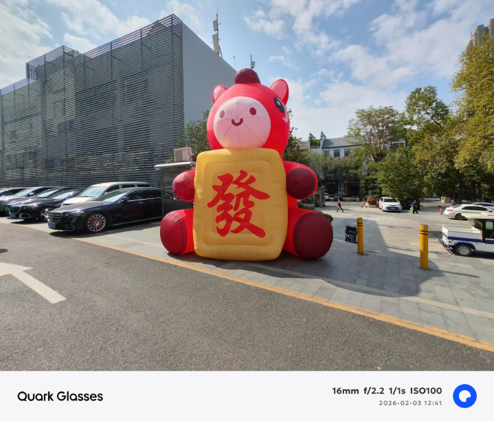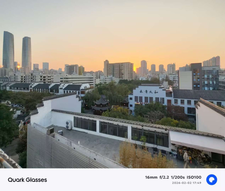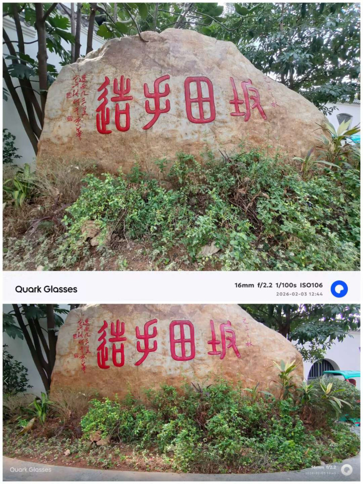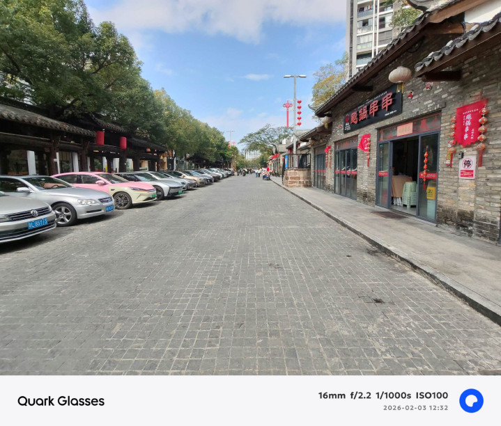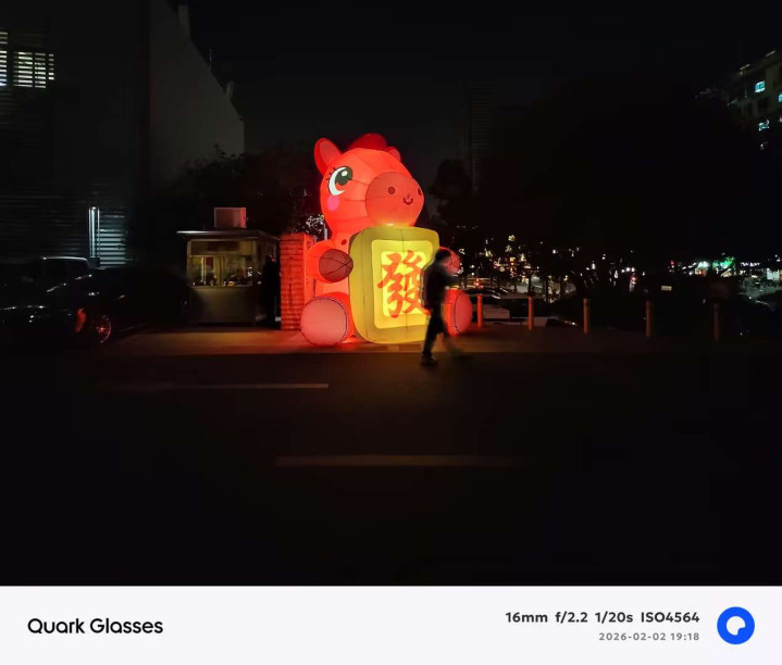 夸克AI眼镜S1拍摄的图片,白平衡准确,色彩还原真实,观感通透,且对于高光的压制也较为优秀。还支持0.6s按键抓拍,拍活泼的孩子和小动物,都能快速捕捉;支持超级暗光增强,夜晚拍照能够提供更丰富的细节;支持水平校正,自动裁切校正画面。但受限于1200万像素,对光线要求较高,光线不足噪点会比较明显。