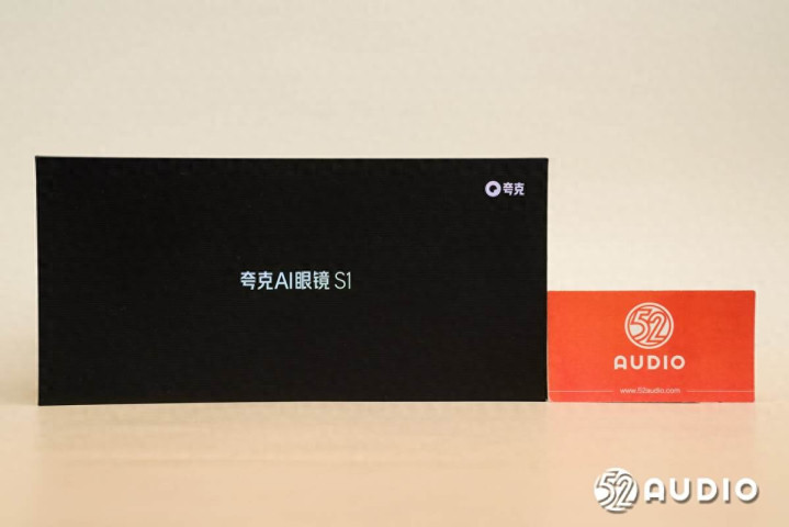 夸克AI眼镜S1包装盒采用了黑色主色调,天地盖结构,顶部设计有产品名称和品牌LOGO。