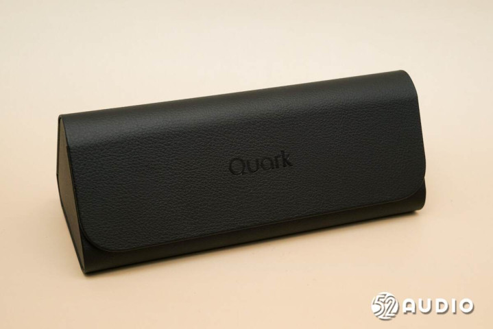 随机标配的眼镜盒,皮革材质,压印有“Quark”品牌LOGO,不支持移动充电功能。官方售卖有支持移动充电的眼镜盒,售价379元。